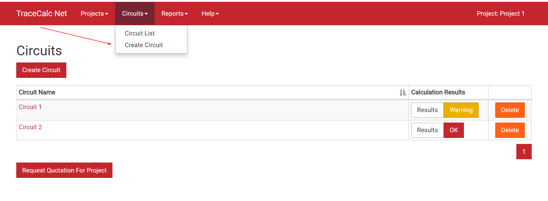 Circuit List: This will direct you back to the listing of all circuits for your project.